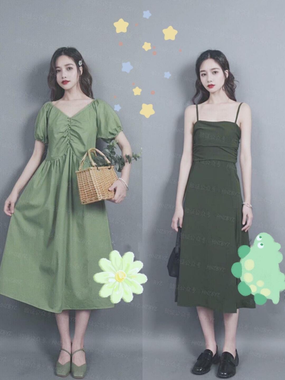 薄荷绿v领连衣裙,这条裙子的上面并没有太多的图案,但是却有一个非常心机的地方,那就是泡泡袖,泡泡袖的设计不仅可以遮住手臂上的肉肉,也能达到很好的减龄效果,更能给人一种可爱的感觉。深绿色吊带连衣裙,同样也是一款没有任何图案的吊带裙,但却有着修身的效果,所以这条裙子会更加显瘦一些。那么你还知道哪些绿色系的穿搭呢?