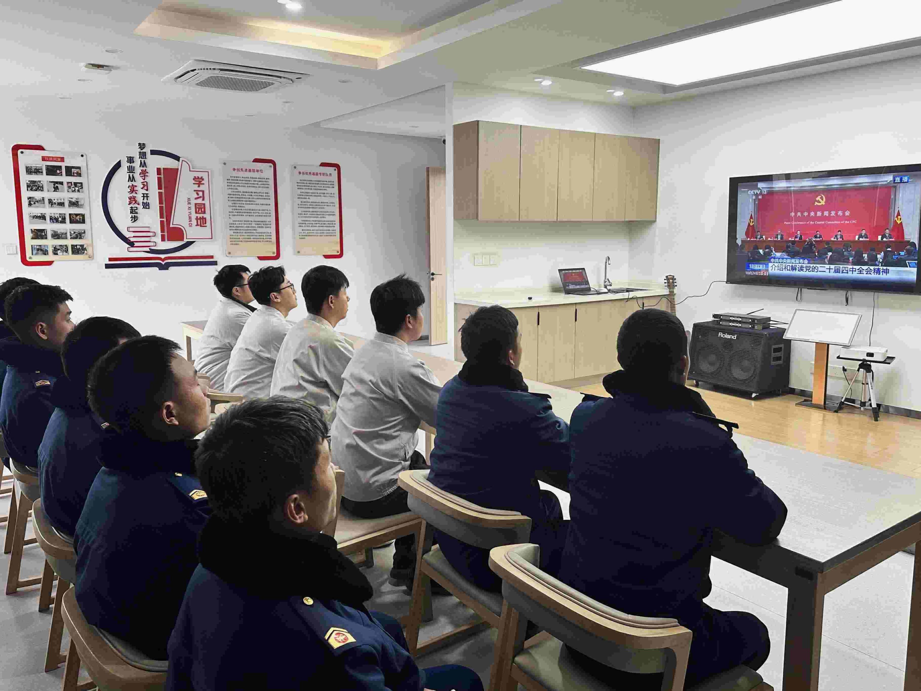 活动现场,双方人员齐聚消防队会议室,通过观看权威解读视频、开展交流研讨等形式,深入学习领会全会精神实质。项目党员与消防队员们结合自身工作实际,踊跃分享学习感悟,现场气氛热烈。